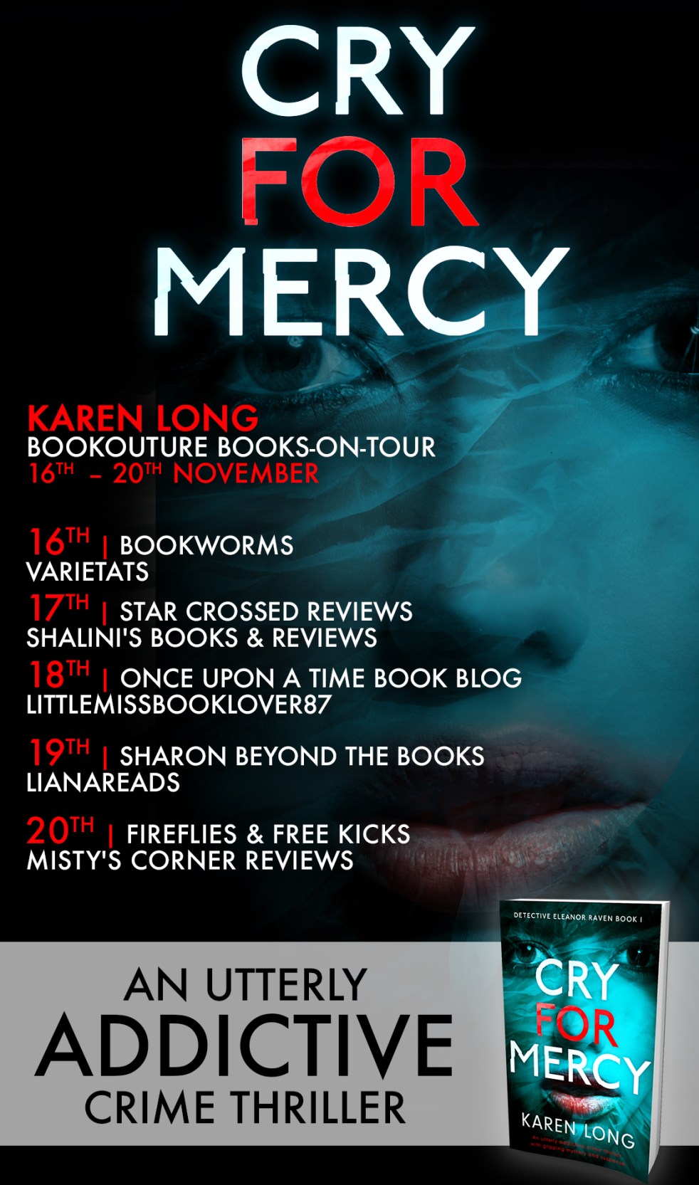 Ready to discover another great book for this 2020? Take a look… Cry for Mercy by Karen Long Genre: ThrillerSource: BookoutureRating: 4/5Publisher: BookoutureAmazon, Hive About The Book The girl’s eyes were open, her gaze softened with a milky hue. Her perfect skin and halo of blonde hair made her look angelic. It was a brutal contrast to the rope suspending her… Continue reading Cry for Mercy by Karen Long – Blog Tour
