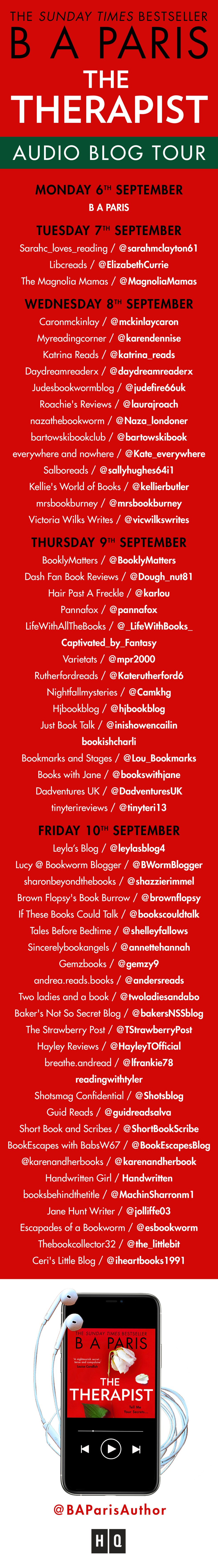 Ready to discover another great book for this 2021? Take a look… The Therapist by B.A. Paris Genre: Psychological ThrillerRating: 4'5/5Publisher: HQ DigitalAmazon, Hive About The Book When Alice and Leo move into a newly renovated house in The Circle, a gated community of exclusive houses, it is everything they’ve dreamed of. But appearances can be deceptive…As Alice is getting to know her… Continue reading The Therapist by B.A. Paris – Audio Blog Tour