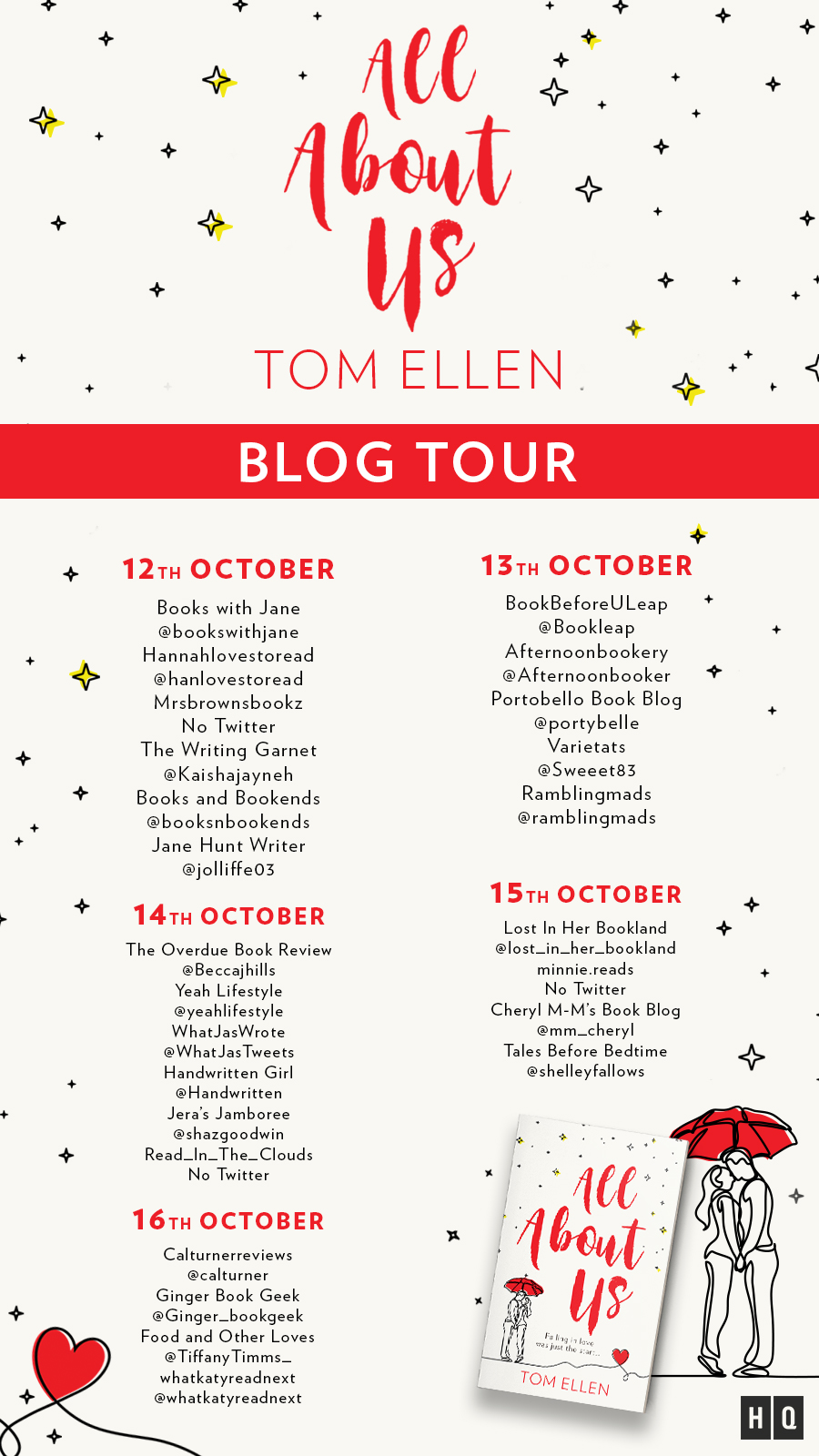 Ready to discover another great book for this 2020? Take a look… All About Us by Tom Ellen Genre: RomancePublisher: HQ StoriesRating: 4/5Amazon, Hive About The Book Ben’s always loved the month of December, but this year, with his relationship with Daphne on the rocks, it’s missing its usual magic. And then his old friend Alice gets back in touch. Ben’s… Continue reading All About Us by Tom Ellen – Blog Tour