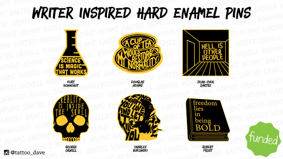 When I saw this Kickstarter project, I couldn't resist to share with you these original pins! These pins are all inspired by Dave Walker favourite writers. The designs have all been soft enamel limited edition pins, and now he is bringing them back in beautiful hard enamel; with the matt gold plating and glossy black… Continue reading Writer Inspired Enamel Pins by Dave Walker