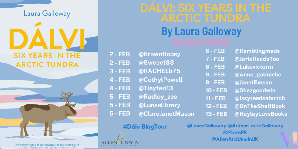 Ready to discover another great book for this 2022? Take a look… Dálvi: Six Years in Arctic Tundra by Laura Galloway Genre: MemoirPublisher: Allen & UnwinSource: Midas PrRating: 4/5Amazon, Hive About The Book A DNA test suggesting she shared some genetics with the Sami people, the indigenous inhabitants of the Arctic tundra, tapped into Laura Galloway's wanderlust. An affair with a Sami… Continue reading Dálvi: Six Years in Arctic Tundra by Laura Galloway – Blog Tour