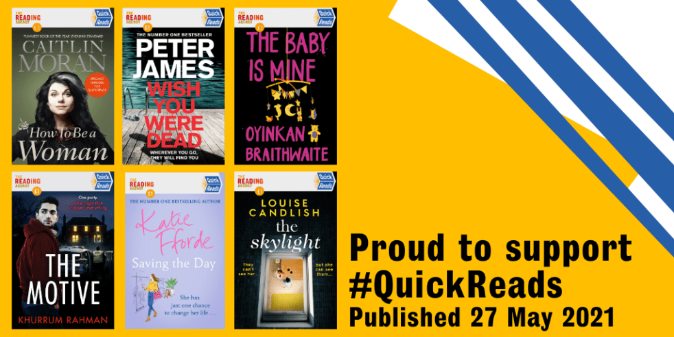 On International Literacy Day, The Reading Agency has unveiled the jackets for the next instalment of Quick Reads, written by Oyinkan Braithwaite, Louise Candlish, Katie Fforde, Peter James, Caitlin Moran and Khurrum Rahman. These six amazing bitesize novels by leading authors will be released on 27 May 2021, marking the 15 th anniversary of the… Continue reading 2021 Quick Reads Jacket Reveal