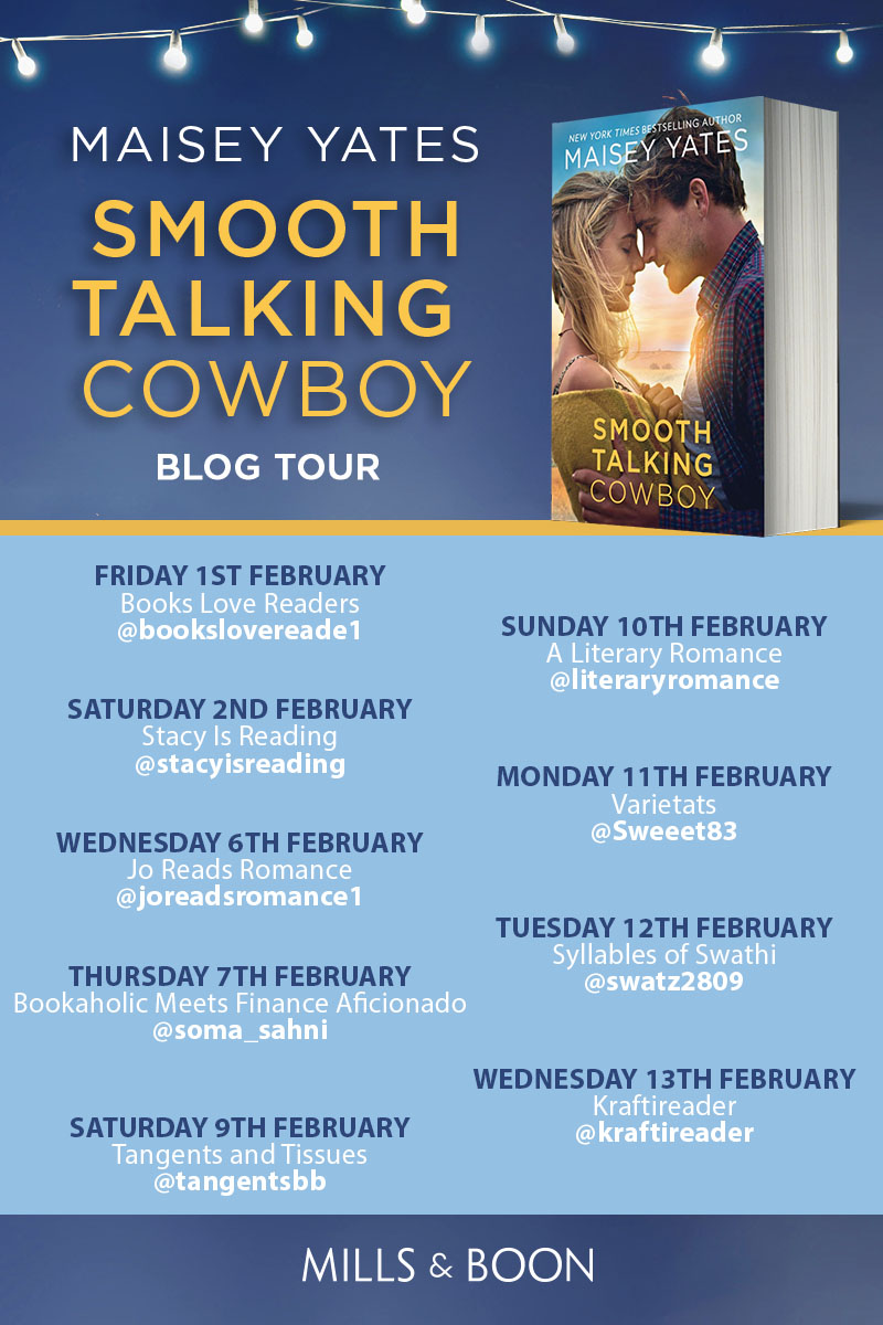 Smooth Talking Cowboy by Maisey Yates Genre: Women’s Fiction Source: Mills & Boon Rating: 4/5 Amazon About The Book Olivia Logan has a plan: win back her ex by making him see what he’s missing. But first she needs to find a man who’s willing to play along. With his laid-back cowboy charm and knack… Continue reading Smooth Talking Cowboy by Maisey Yates – Blog Tour