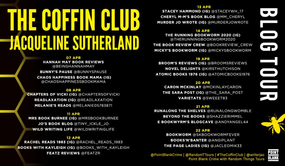 Ready to discover another great book for this 2022? Take a look… The Coffin Club by Jacqueline Sutherland Genre: Psychological ThrillerPublisher: Oneworld PublicationsSource: Random Things ToursRating: 4'5/5Amazon, Hive, Waterstones About The Book Everyone deserves a second chance. Don’t they?After losing her husband in a car accident, leaving her permanently scarred, wealthy widow Kat Alexander moves to the countryside to start a new life.… Continue reading The Coffin Club by Jacqueline Sutherland – Blog Tour