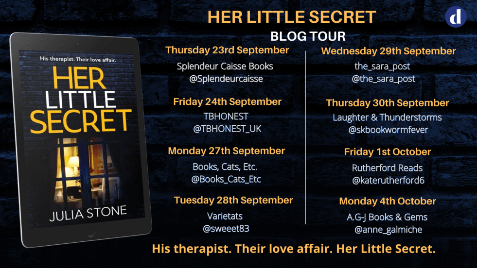Ready to discover another great book for this 2021? Take a look… Her Little Secret by Julia Stone Genre: Psychological ThrillerRating: 3'5/5Publisher: Orion DashAmazon, Hive About The Book His therapist. Their love affair. Her Little Secret.Cristina knows all about boundaries. As a therapist, it is vital that she keeps her clients at a professional distance.Enter new client Leon: educated, charming, affluent… Continue reading Her Little Secret by Julia Stone – Blog Tour