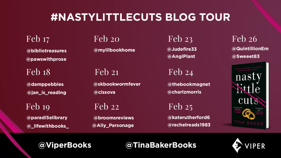 Ready to discover another great book for this 2022? Take a look… Nasty Little Cuts by Tina Baker Genre: Psychological ThrillerPublisher: Viper BooksRating: 4'5/5Amazon, Hive About The Book A nightmare jolts Debs awake. She leaves the kids tucked up in their beds and goes downstairs. There's a man in her kitchen, holding a knife. But it's not an intruder. This is… Continue reading Nasty Little Cuts by Tina Baker