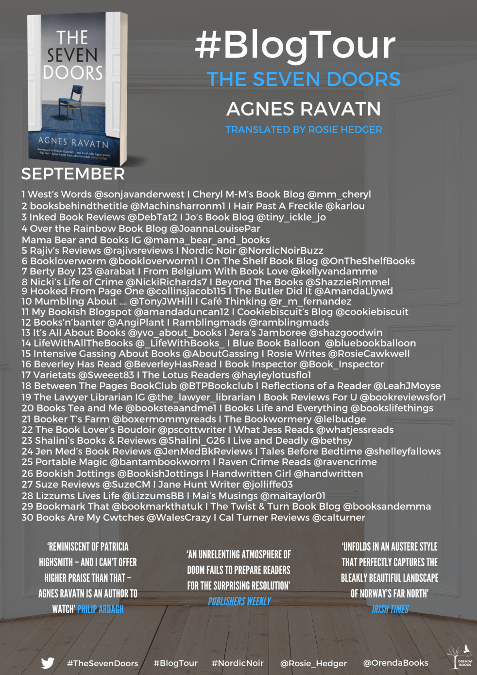 Ready to discover another great book for this 2020? Take a look… Seven Doors by Agnes Ravatn Genre: Psychological Thriller Source: Random Things Tours Publisher: Orenda Books Rating: 4/5 Amazon, Hive About The Book University professor Nina is at a turning point. Her work seems increasingly irrelevant, her doctor husband is never home, relations with her adult daughter Ingeborg are… Continue reading Seven Doors by Agnes Ravatn – Blog Tour