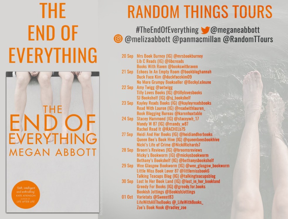 Ready to discover another great book for this 2021? Take a look… The End of Everything by Megan Abbott Genre: Psychological ThrillerSource: Random Things ToursRating: 4/5Publisher: Picador BooksAmazon, Hive About the Book Megan Abbott is an award-winning author of noir fiction including Queenpin and Bury Me Deep (nominated for the Edgar Award and the Los Angeles Times Book Prize).Her novel The End of Everything was a Richard and Judy selection… Continue reading The End of Everything by Megan Abbott – Blog Tour