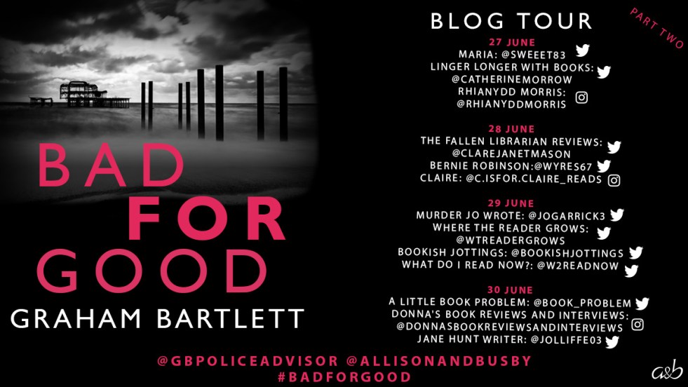 Ready to discover another great book for this 2022? Take a look… Bad for Good by Graham Bartlett Genre: Psychological ThrillerPublisher: Allison & BusbySource: Helen RichardsonRating: 4/5Amazon, Hive, Waterstones About The Book How far would you go?The murder of a promising footballer, son of Brighton’s highest-ranking police officer, means Detective Superintendent Jo Howe has a complicated and sensitive case on her hands. The situation… Continue reading Bad for Good by Graham Bartlett – Blog Tour