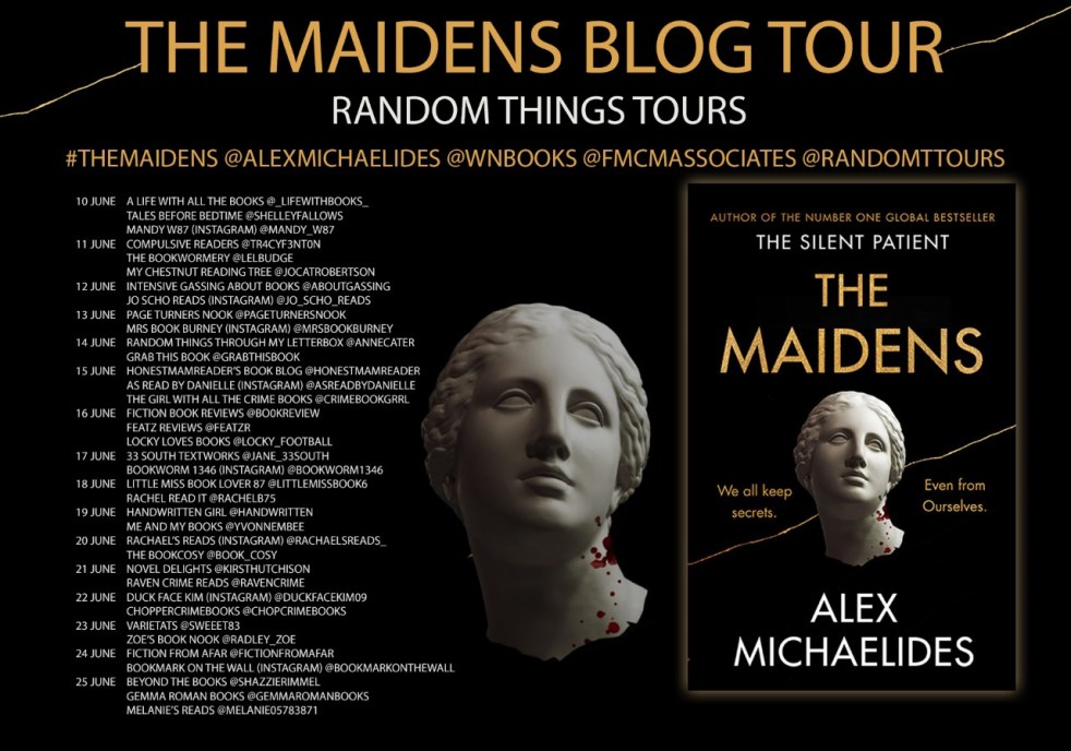Ready to discover another great book for this 2021? Take a look… The Maidens by Alex Michaelides Genre: Psychological ThrillerSource: Random Things ToursRating: 4/5Publisher: W&N PublisherAmazon, Hive About The Book St Christopher's College, Cambridge, is a closed world to most.For Mariana Andros - a group therapist struggling through her private grief - it's where she met her late husband. For her niece,… Continue reading The Maidens by Alex Michaelides – Blog Tour